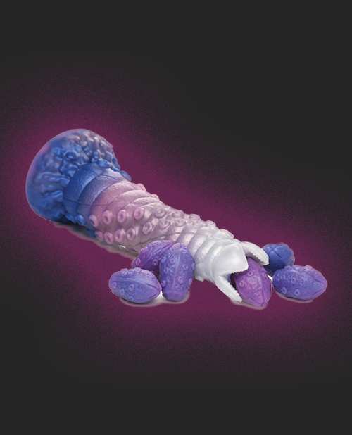 This unique ovipositor has a tentacle shaft is ribbed with spirals of suckers and the head is an open mouth that the eggs slip through. The long, soft, and flexible shaft has a hollow center that is wide enough for the soft, silicone eggs to squeeze through and impregnate you with!
