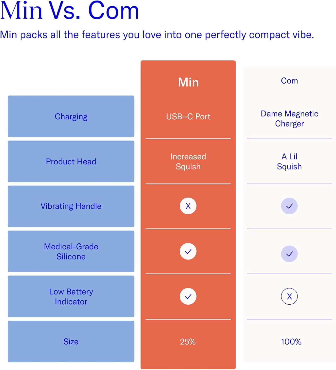 Meet Min: a vibe that proves good things come in small packages. With a powerful motor and non-vibrating handle, Min is personal, versatile, and ready for any kind of play. Min’s body-weighted motor and spring-loaded head keep the vibes up top—so the handle stays still and steady. It’s super quiet, ergonomic, and easy to clean—which honestly matters, because who has time for anything complicated? Min packs all the features you love of a wand vibrator into one perfectly compact toy. Available in two delicious colors.