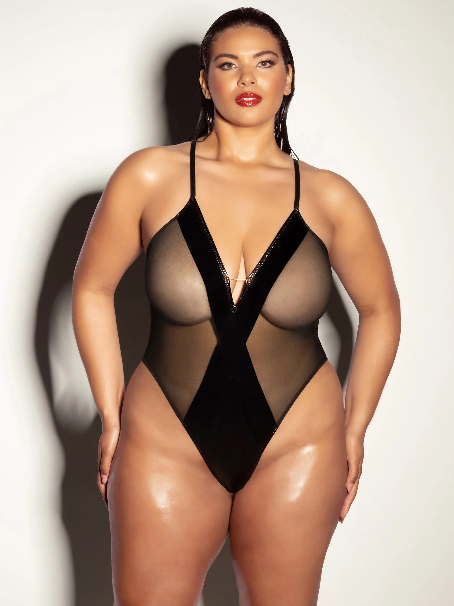 Elevate your bedroom adventures with the Fetish Finesse Vinyl & Mesh Teddy. This provocative piece combines soft cup vinyl and mesh with a daring barbell trim, creating a look that exudes confidence and allure. The couvert open back design adds an extra element of seduction, while the standard adjustable shoulder straps ensure a comfortable fit. Embrace your curves with this plus-size option that celebrates every body type. Let your fantasies run wild and step into a world of pleasure with the Fetish Finesse Vinyl & Mesh Teddy.