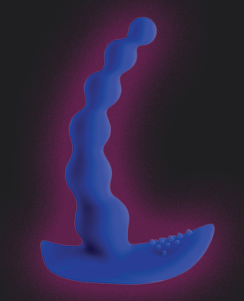Ultra smooth silicone round beads graduate from small to large on this gently curved vibrating shaft that ends in a chunky textured oval base that will delightfully tickle your taint.