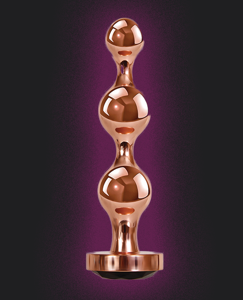 Experience the sexy allure of this sleek and stylish metal plug that comes in three delicious sizes! Savor the bulbous, nonporous, shiny shaft that features an incremental bead design–and the stylish sparkling black gem at the base! Try sensation play by warming or cooling your plug first with water for added pleasure!