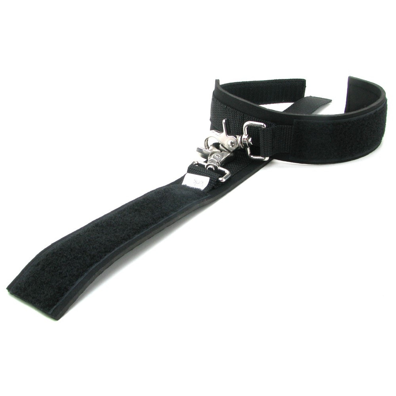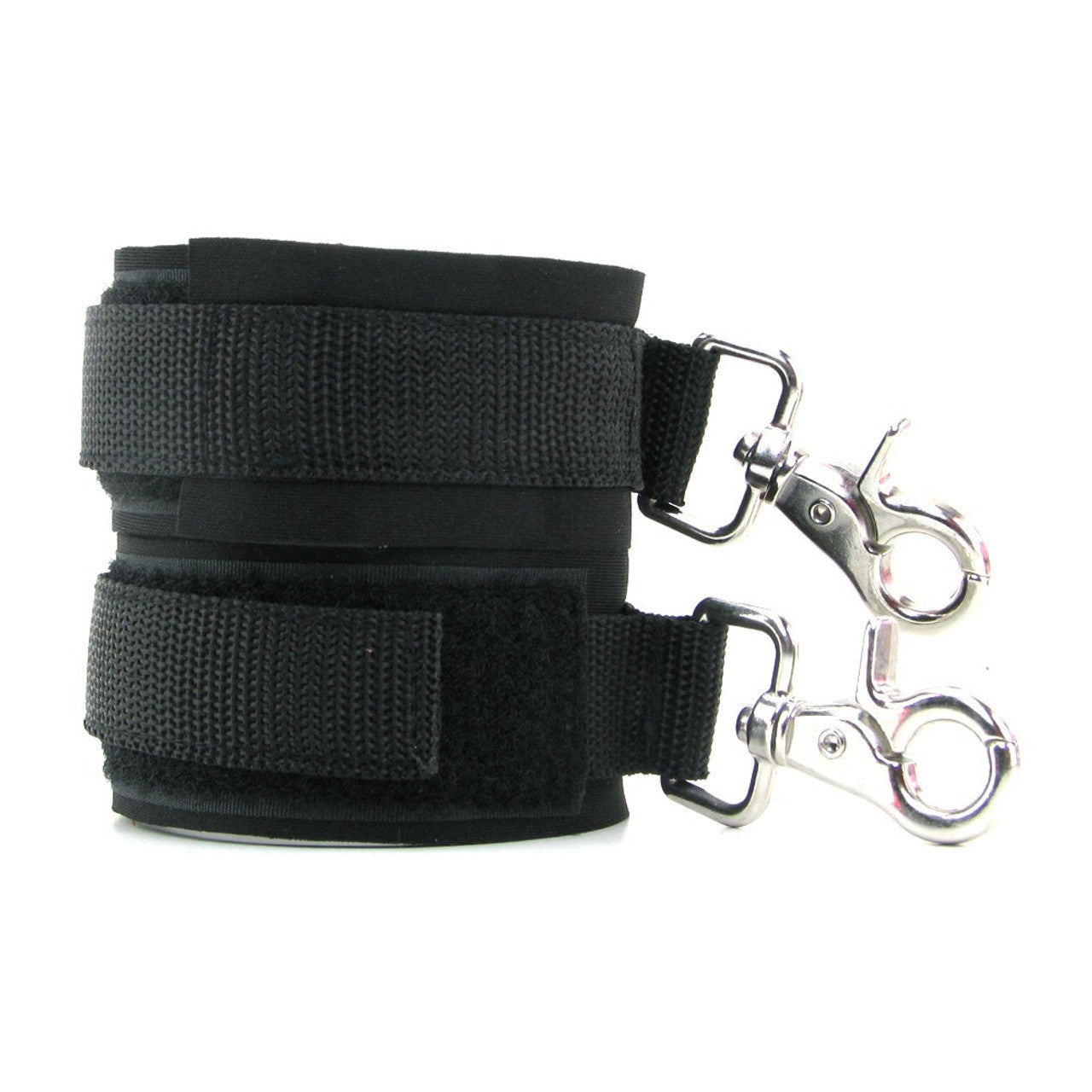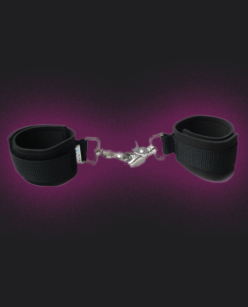 The KinkLab Neoprene Cuffs are very versatile, washable, and a great beginner's item for those exploring bondage. These KinkLab cuffs are made out of Neoprene which is a very soft smooth foamy material, and lined with smooth black spandex. The KinkLab Neoprene Cuffs can be used for either the wrists or ankles since they're fully adjustable up to 10" with the wraparound Velcro design. While we wouldn't recommend these cuffs for intense play, they do feature feature industrial strength hooks that are sewn firmly into the cuffs and comes with a crab claw-style hook that rotates completely to prevent twisted arms or tangles. Hooks and hardware are nickel-free to prevent allergies.