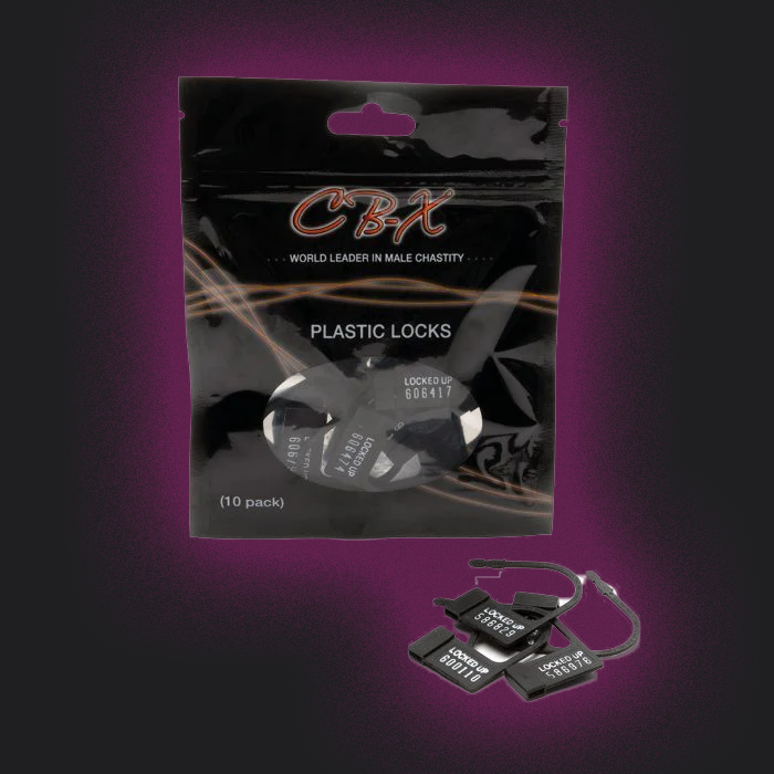 CB-X Single-Use Individually Numbered plastic locks are available in a 10 or 30-pack. Make travel easy while wearing your chastity device and discreetly pass through TSA, or any metal detector, with these one-time-use plastic locks. These numbered locks work great for business trips, or for the user who prefers a more low-profile and discreet look & feel to their chastity experience. They take the place of the Master Lock on your chastity kit and must be cut off for device removal. Each lock is individually numbered so if you cut it off, you're caught!
