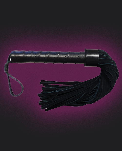 Suede floggers are sensual yet pack a punch! This short flogger features a leather handle to add some extra weight behind each throw!