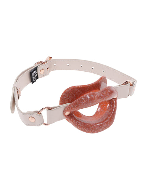 Say it without saying a word with the perfect blend of flirty fun and peachy play! Shaped like luscious lips in a tempting peach pearlescent hue, this silicone masterpiece is both inviting and seductive for oral play. The faux leather buckle ensures a secure fit while letting you are left speechless. Perfect for beginners or seasoned enthusiasts, the Peaches ‘n CreaMe Lips Gag adds a playful twist to your intimate moments. Explore a new flavor of kinky play and leave your bottom silently begging for more.<