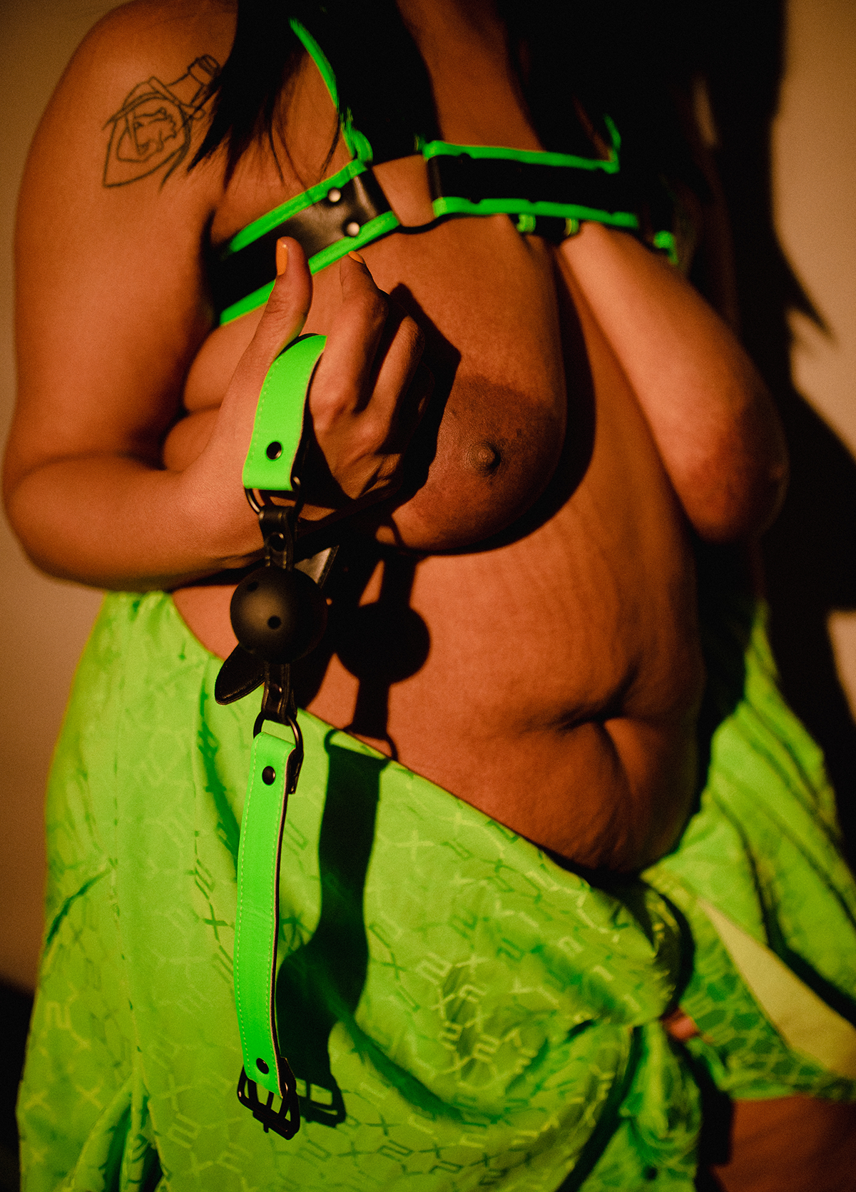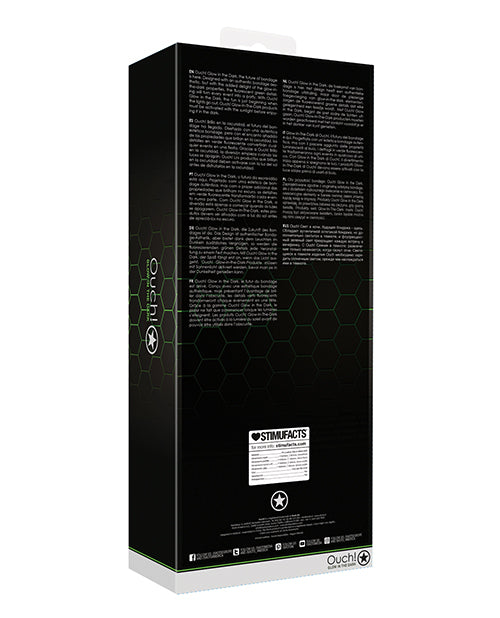 The future of bondage is here! Designed with an authentic bondage aesthetic, but with the added delight of the glow-in-the-dark properties, the fluorescent green detailing will turn every event into a part. With Ouch! Glow in the Dark, the fun is just beginning when the lights go out. Explore your kinky side with this kit! The kit comes up with all the essentials you need to heat up your sex life. The kit contains: Wrist Cuffs, Breathable Ball Gag, Dice, Paddle and an Eye Mask. These products must be activated with the sunlight before enjoying it in the dark.